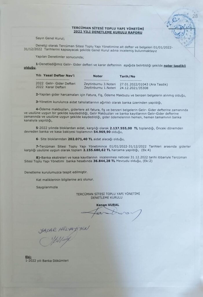 2022 Yılı Denetleme Kurulu Raporu