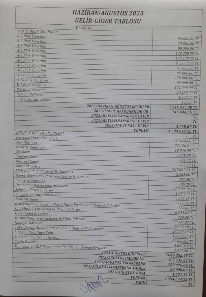 HAZİRAN TEMMUZ GELİR GİDER